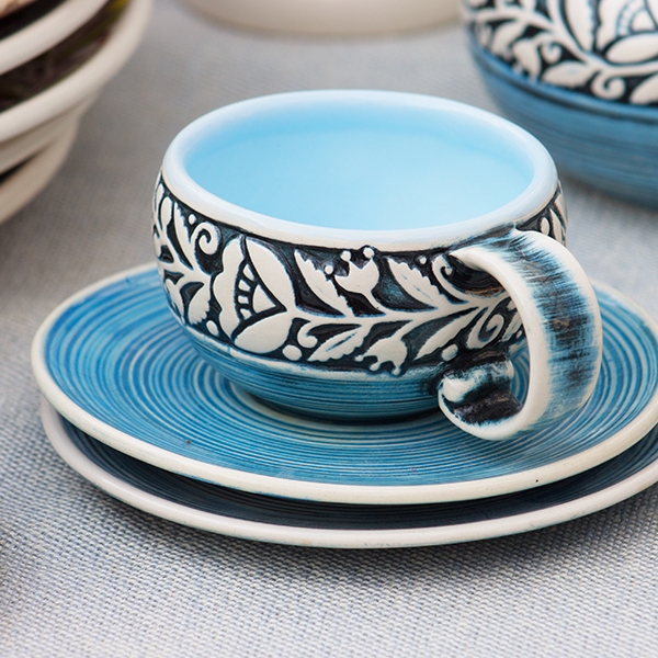Give your Christmas dinner table a uniquely Indian twist with handmade blue dinnerware from Jaipur. Glazed on a low fire and made from a mixture of Multani Mitti (Fuller’s Earth), quartz & powdered glass with the eye-catching blue dye, every piece is a true labor of love. The rich cobalt blue that adorns the flora and fauna motifs on these pieces contrast beautifully with the reds and greens of Christmas decor for an exquisite holiday meal setting.